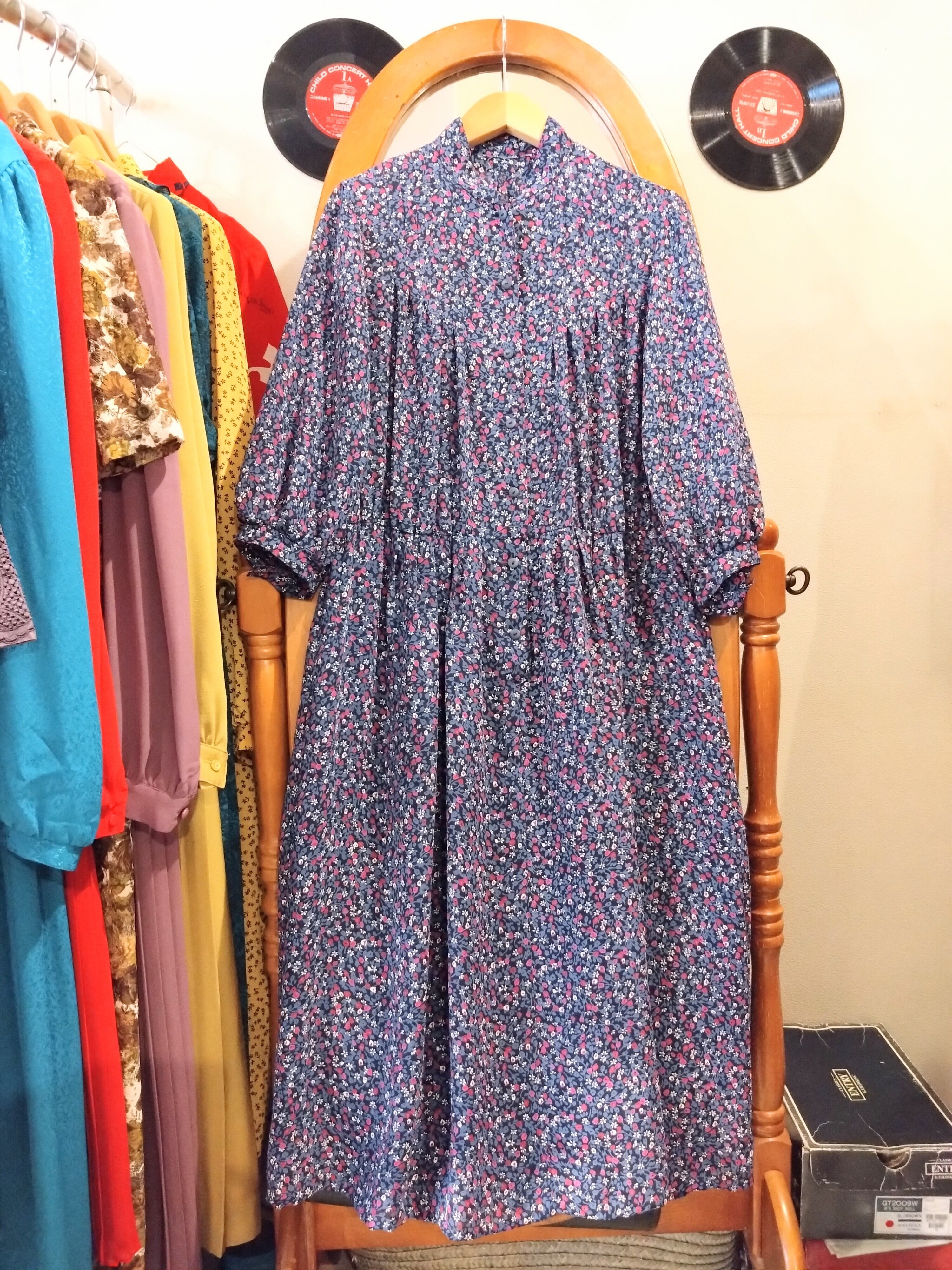 丸みのあるレトロな小花柄がフェミニンで可愛いアンティークなワンピースです。