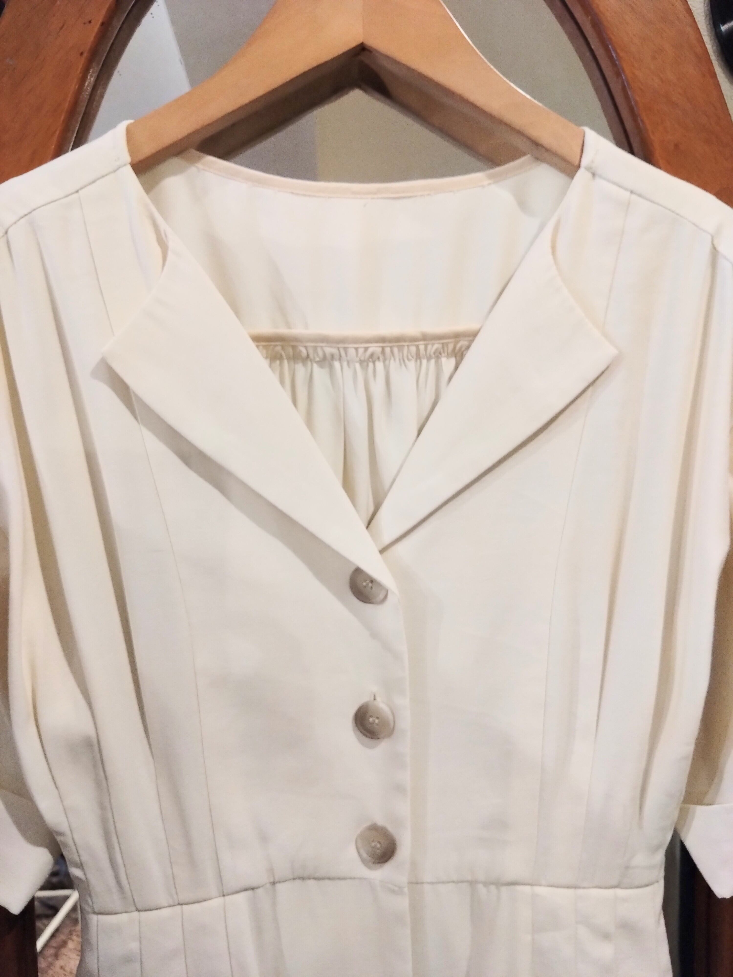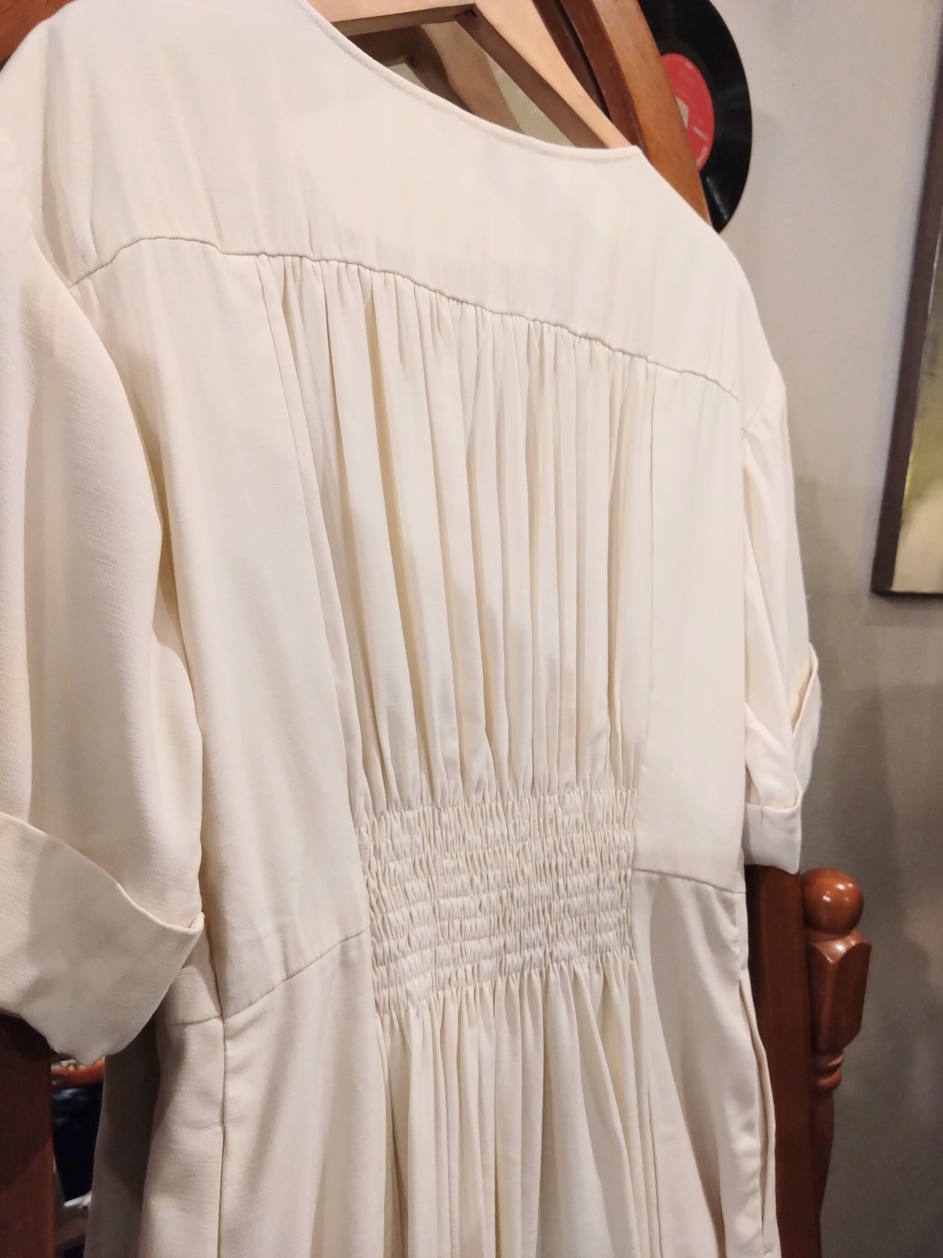 ナイチンゲールを彷彿とさせる清らかな生成りの無地ワンピースです。