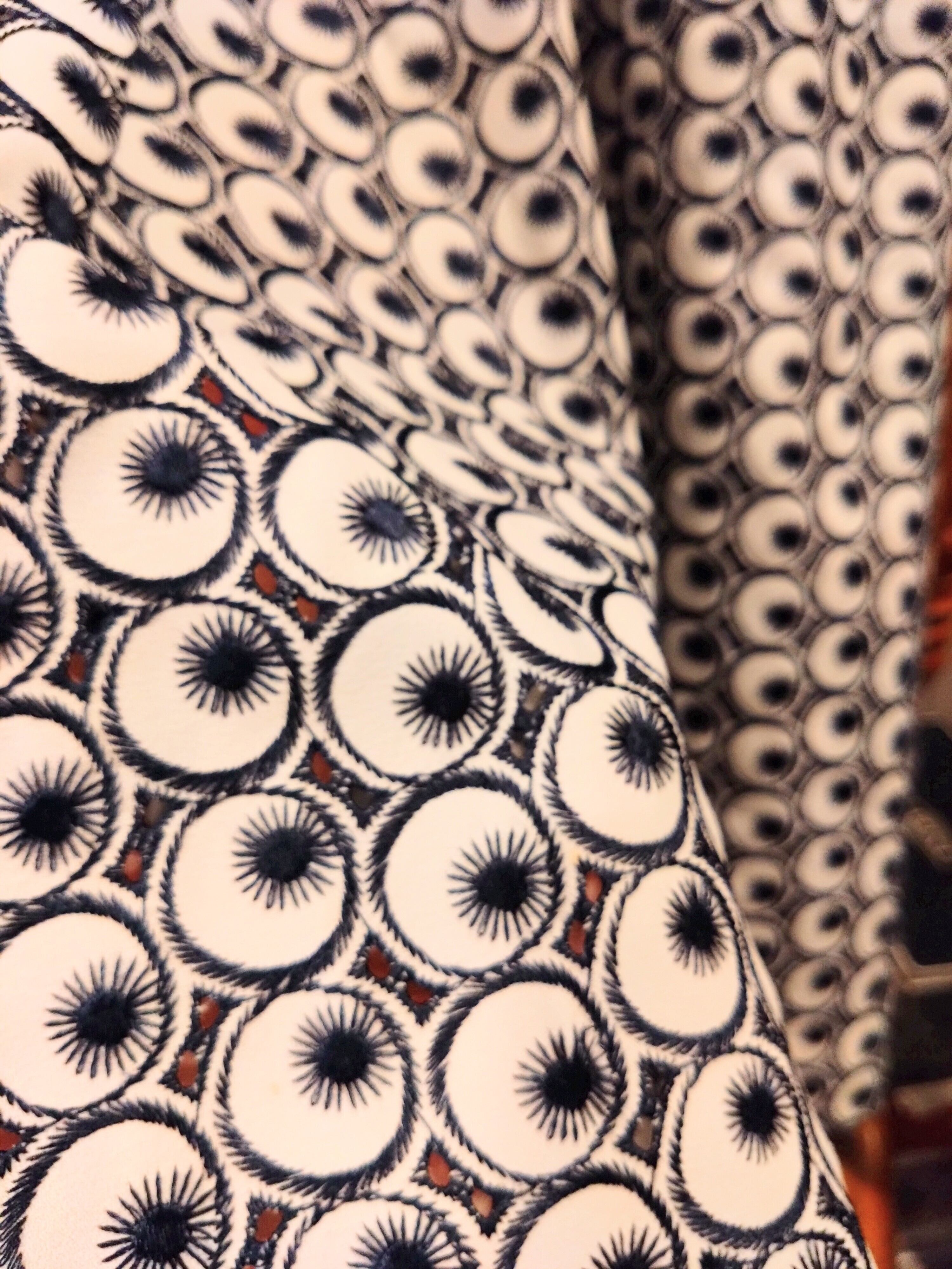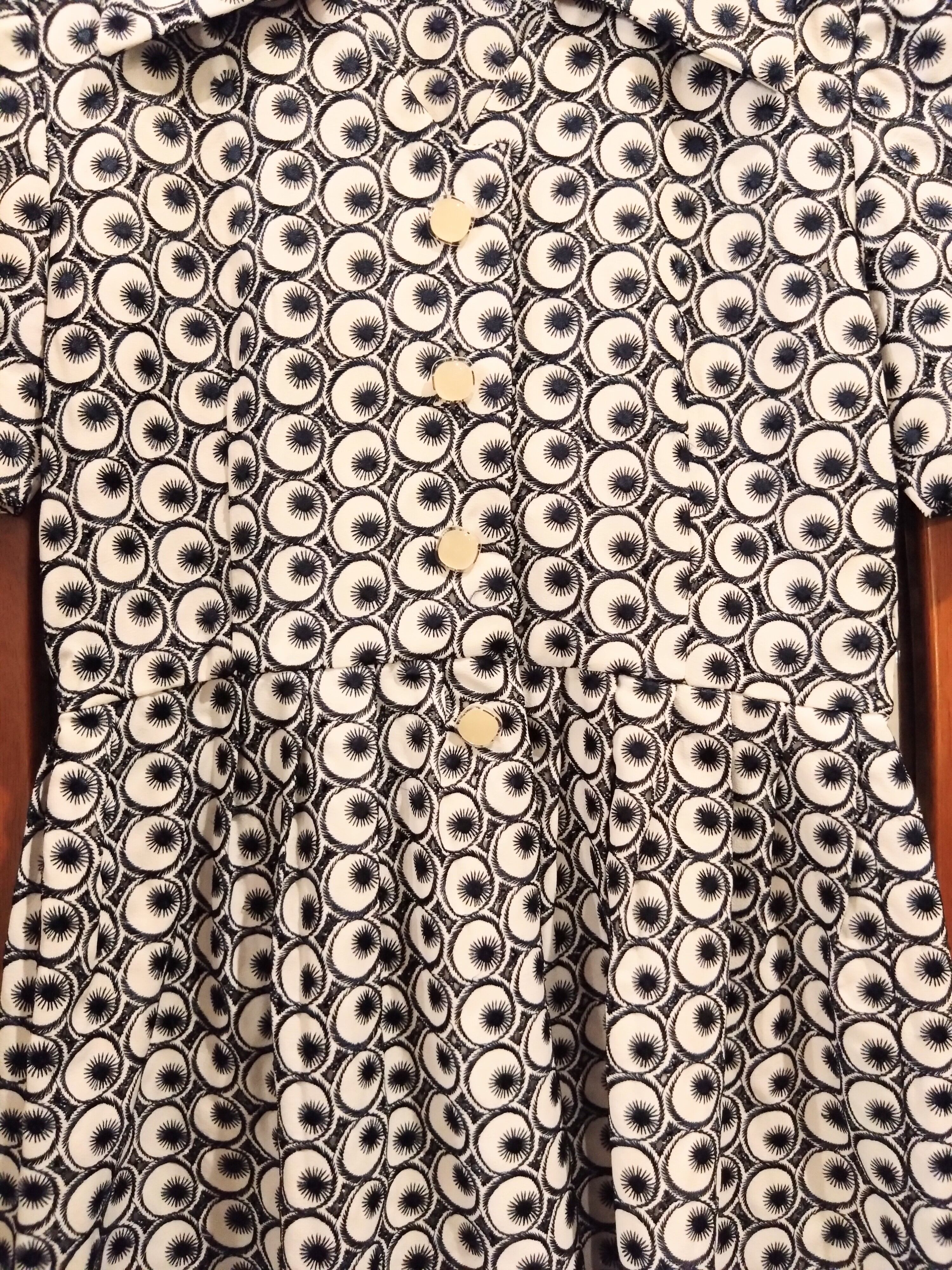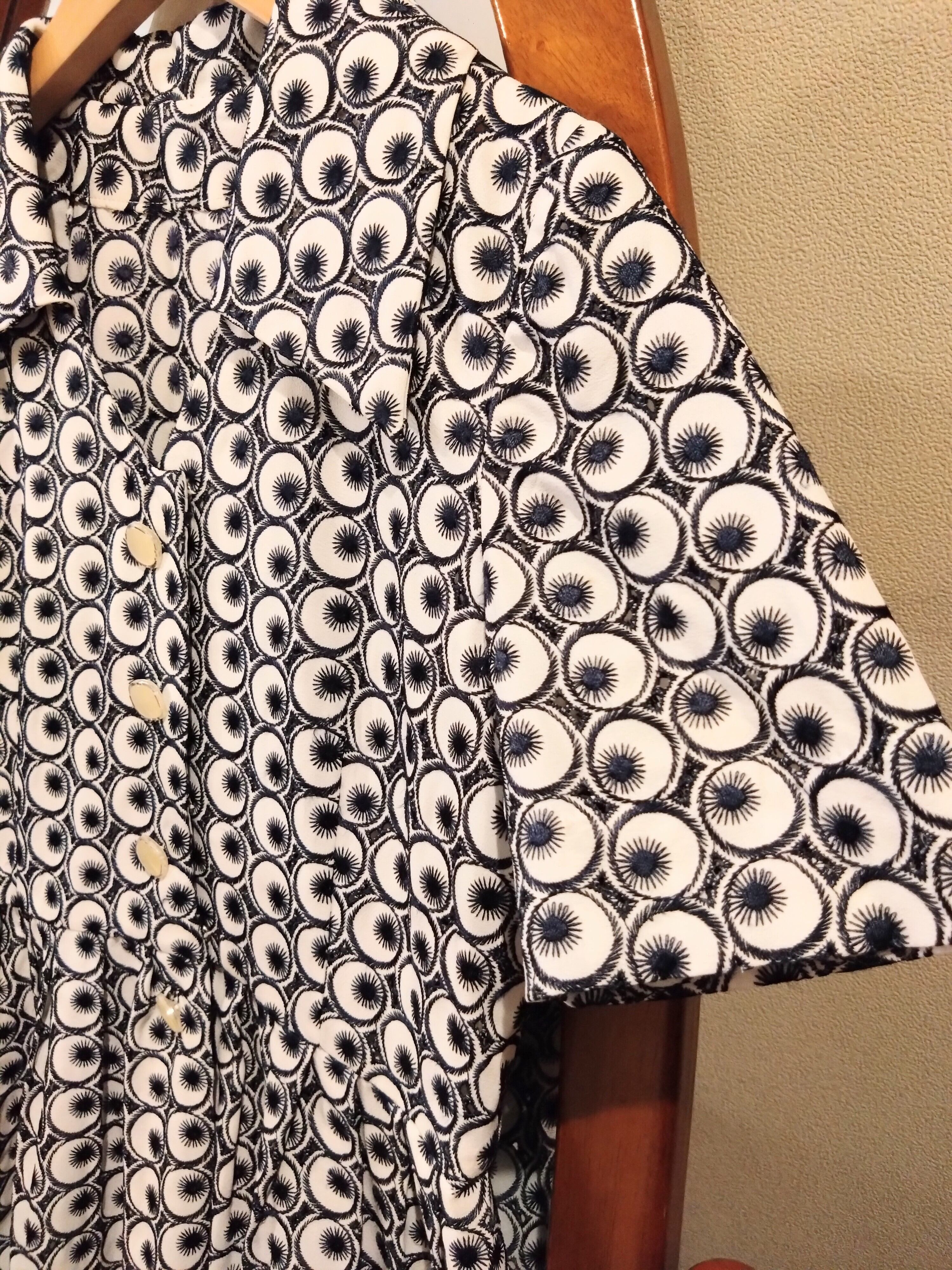 目玉みたいな卵みたいな謎の刺繍で埋め尽くされたちょっぴりホラーなレトロワンピースです。
