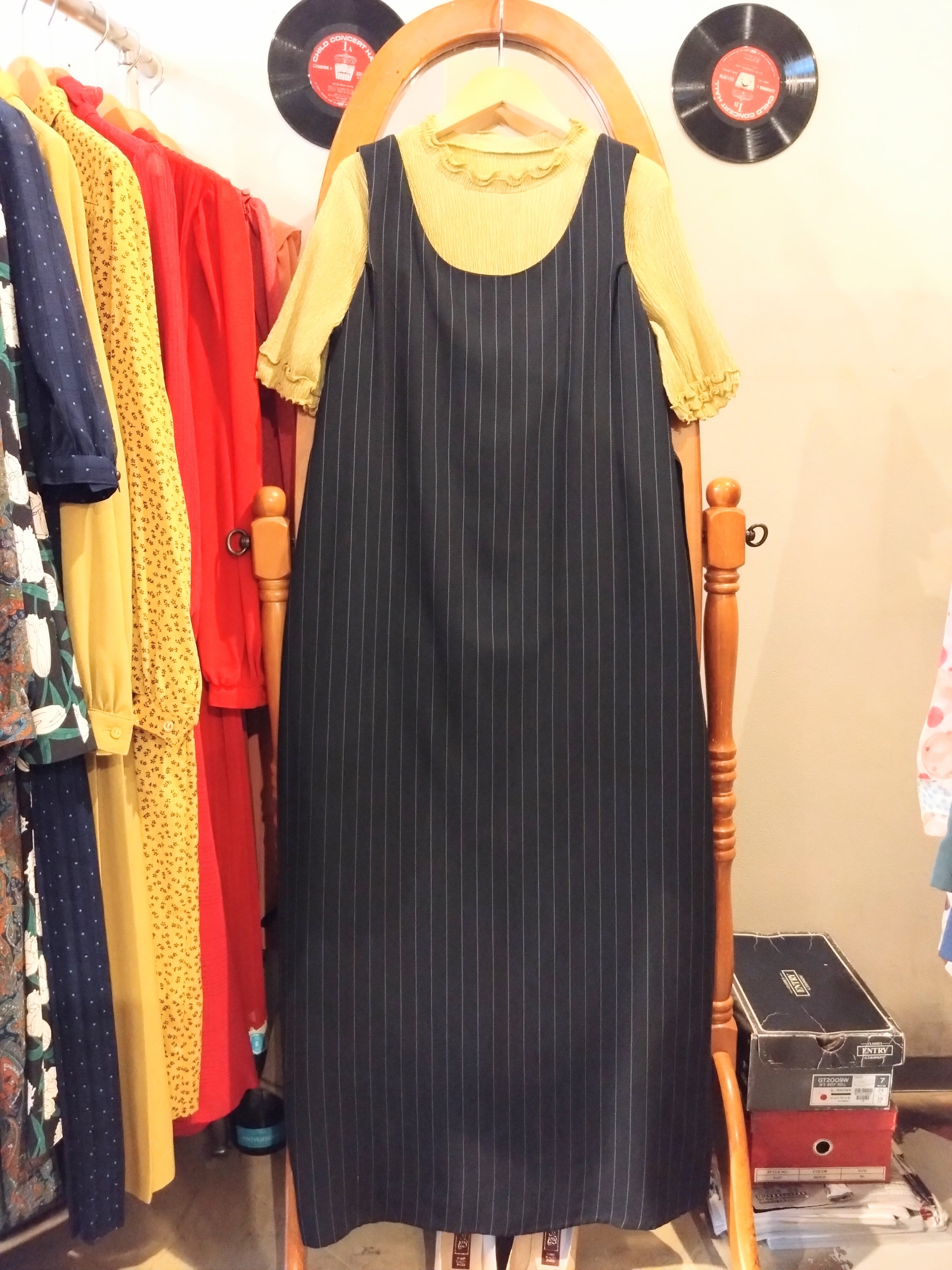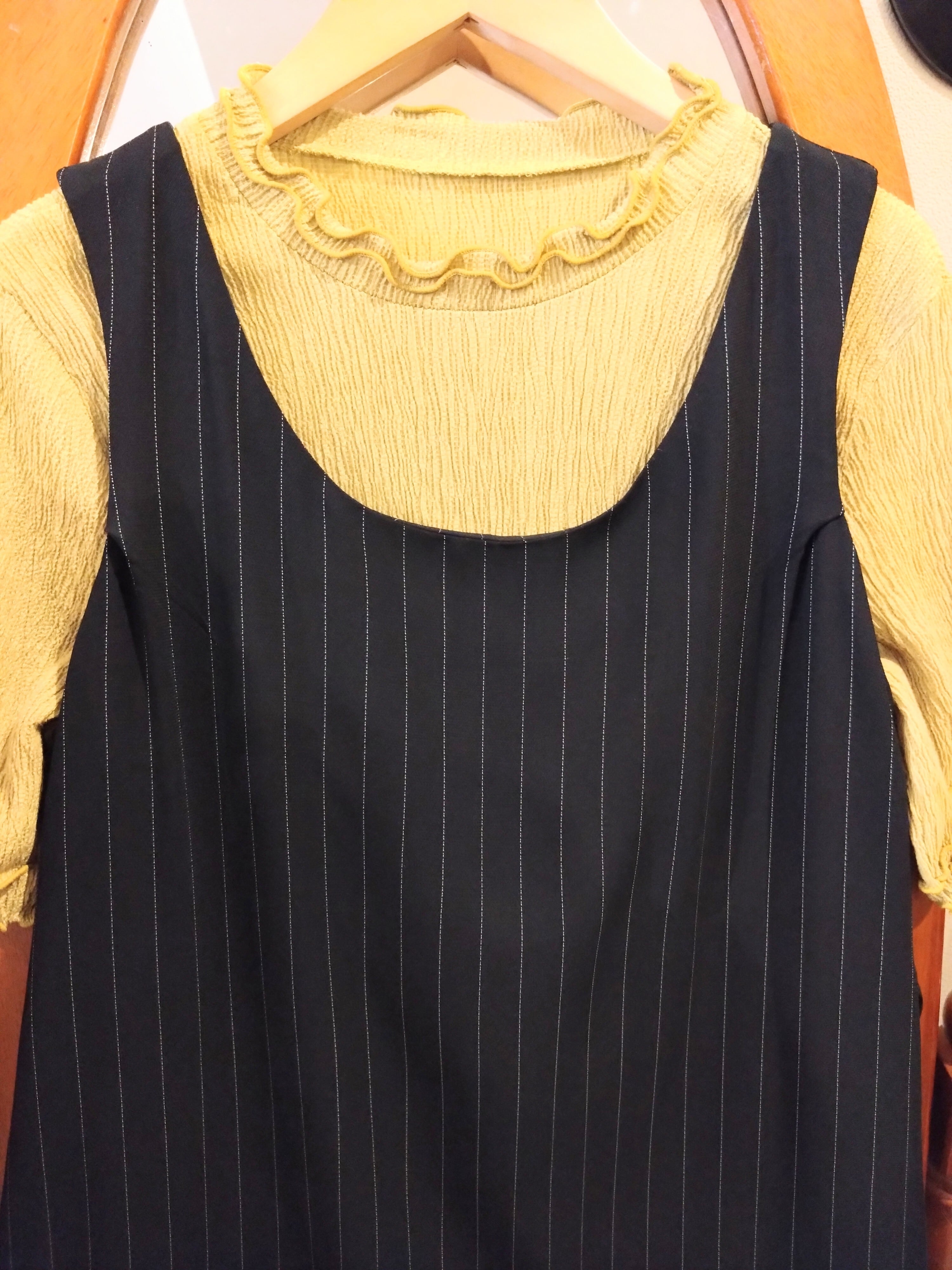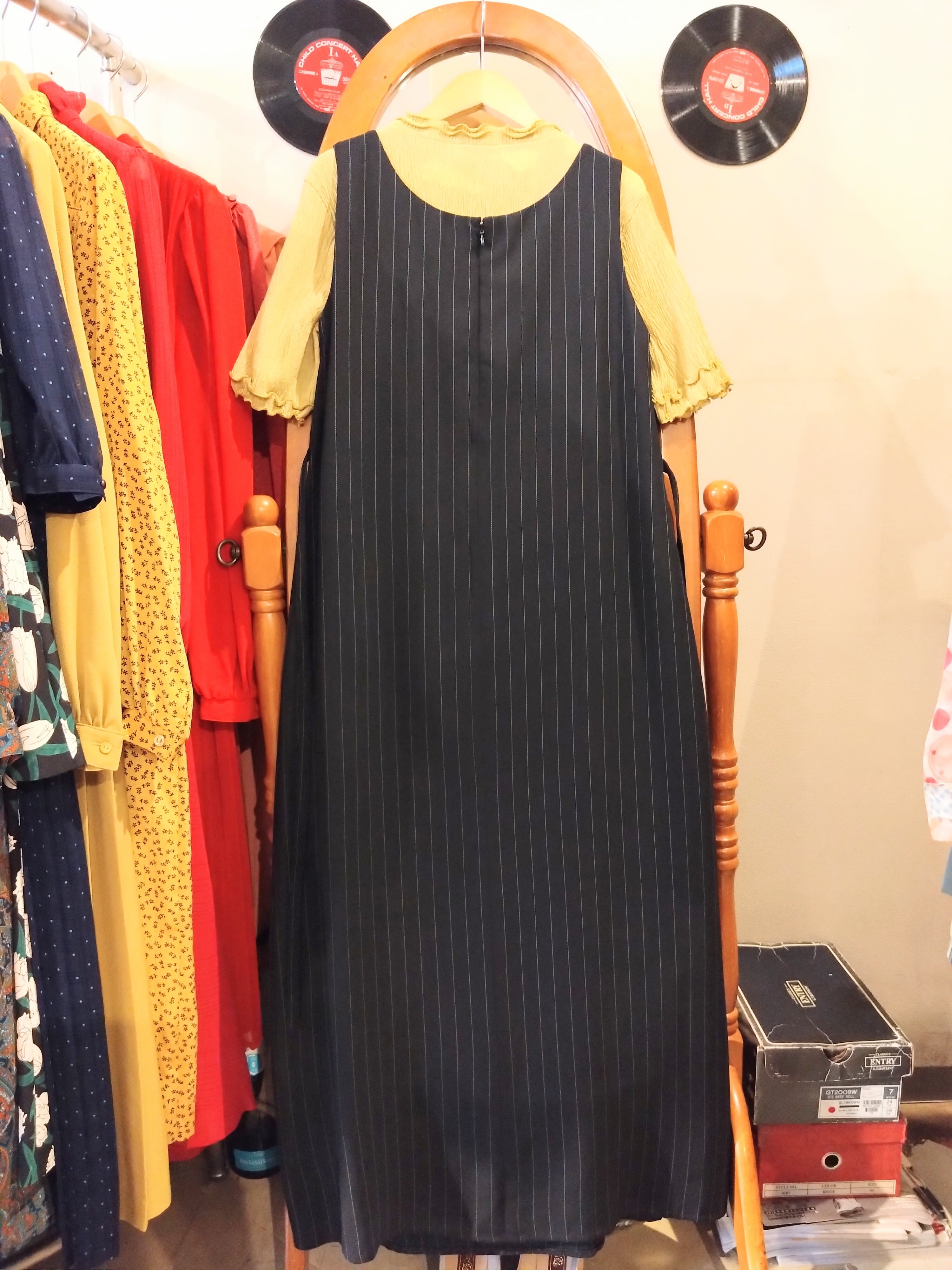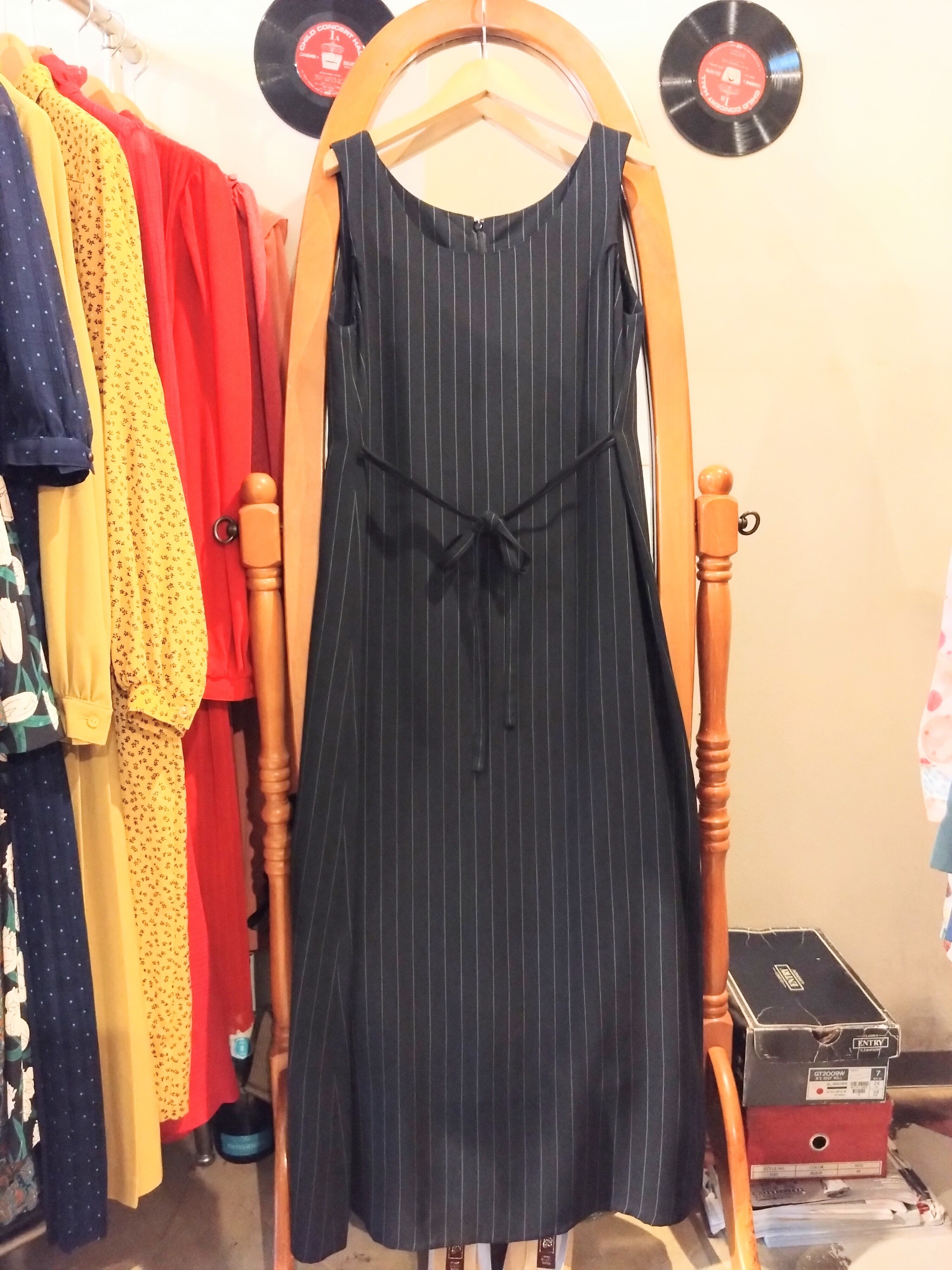 黒地に白いステッチみたいなストライプがお洒落なノースリーブワンピースです。
